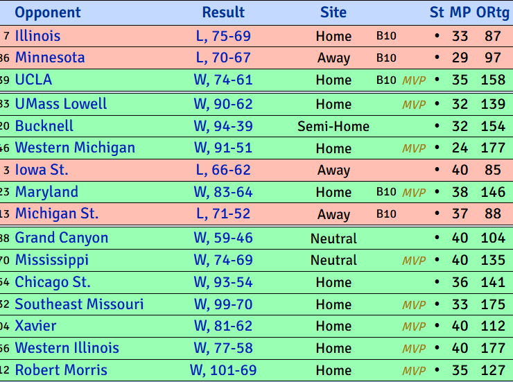 But the chances of those holding through the rest of a Big Ten season don’t look great. Brian Rauf at Basket Under Review summed it up, prior to the Illinois loss: